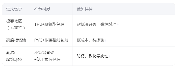 ?注意事項?:定期檢查包膠層磨損情況,避免硬物刮擦;低溫環境下需驗證材質的抗脆裂性。